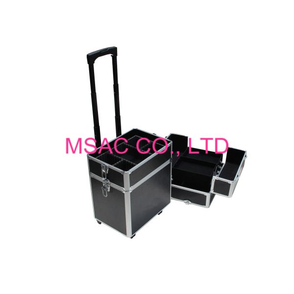 Black PU Leather Aluminum Cosmetic Trolley Case 360*240 *710mm For Travel